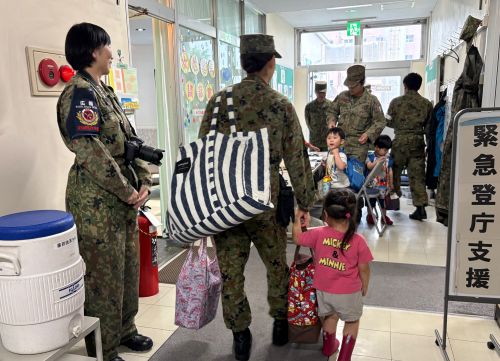 《災害派遣時に自衛官の子どもたちを預かる訓練》