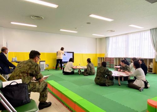 お話は、熊本市内とことこ保育園、ことな保育園、りんな保育園の先生方。レクチャーあり、実践体験ありで、参加した女性隊員のみなさんは、一生懸命に受講しておられました。