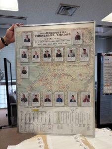 事務所内を眺めてまず目に入ったのが、自衛隊家族会の会長、分会長の顔写真入りのパネルです。やはりこういうものがないと一体感が生まれないように思います。