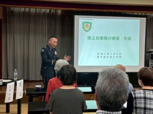 総会後、熊本地方協力本部長矢野1佐から自衛隊の「概要と取組について」ご講話をいただき、その後、意見交換会となりました。