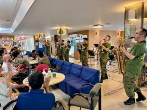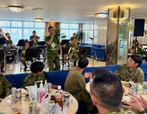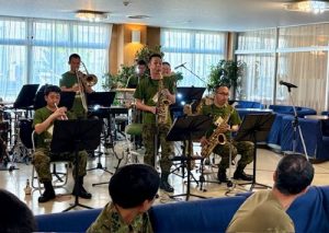 がやがやと隊員家族が集まりだすと、軽快な生演奏がスタート。コンボ編成からなる第8音楽隊の精鋭です。