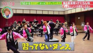 番組はフジTV系列のTKUテレビ熊本の「英太郎のかたらんね」です。ローカルタレントの英太郎さんが8音の練習場を訪問し、歌やダンスを一緒にするという企画の中で、コンサートの告知について特別にスタジオからの生放送で行いました。