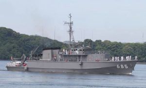 実はこの日、太平洋戦争中に牛深沖で撃沈された旧日本海軍の軽巡洋艦「長良」の隊員348人を供養する慰霊式典が牛深総合センターで行われ、掃海艇「とよしま」はその遺族や関係者の洋上慰霊のために駆け付けた艦艇です。