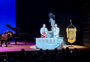 ご長寿番組のメドレーでは懐かしの番組が再現され、3分間クッキングでは自衛隊の戦闘用糧食の作り方を披露。観客も興味津々で楽しんでいました。