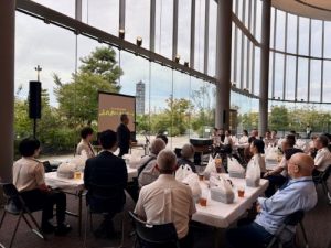 永田隊長始め隊員の皆さん、大変良い表情でした。私も乾杯のご挨拶の中で改めて音楽隊の皆さんにエールを送りました。とにかく新体制で8月の数多くのイベントを支援し、恒常的な勤務もこなし、その中でコンサートに向けて準備をするということは並大抵のことではできないからです。コンサートの様子はYouTubeに投稿されています。忙しい方は2部だけでも是非ご覧下さい。