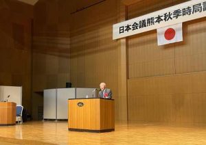 日本会議熊本と同議員連盟の共催で行われた時局講演会を無事終了しました。講師は元統合幕僚長、河野克俊先生です。私は受付を担当しました。 約90分にわたり、現在の日本を取り巻く情勢と憲法改正問題について分かりやすく講話をいただきました。一般の方はもとより、30名を超える議員の参加があり、問題点を共有する上で大変有意義であったろうと思います。 終了後の懇親の席も大変活発な意見が交わされました。(熊本県会長:光永)