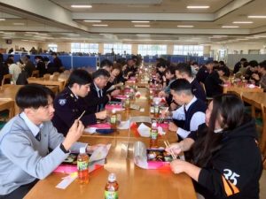 やはり入隊してからの任地や職種に不安があるように感じましたが、私からは自衛隊ならでは魅力を伝えました。懇談の時間は、各テーブル毎になごやかなやり取りが行われていました。