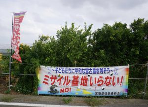 さらに、宮古島にはもうひとつ航空自衛隊分屯基地が昭和48年から存在しておりますが、こちらには横断幕等一切ありませんでした。不思議な話です。(熊本県会長:光永)