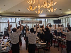 隊歌の歌詞を改めて読むと、裏方支援にまわる任務の大切や心構えが見事に表現されています。隊歌を通して深まる絆があることを実感しました。準備にあたった事務局の皆さんに心より感謝します。(熊本県会長:光永)