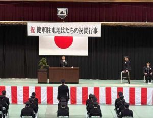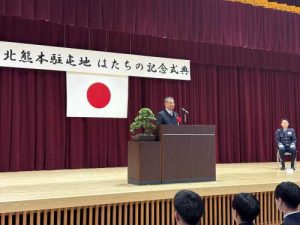 北熊本駐屯地と健軍駐屯地で各々「はたちの祝賀行事」が行われました。幸い1時間ほどの時間差がありましたので、とんぼ帰りで両方に参加し、熊本県自衛隊家族会会長として祝辞を述べました。